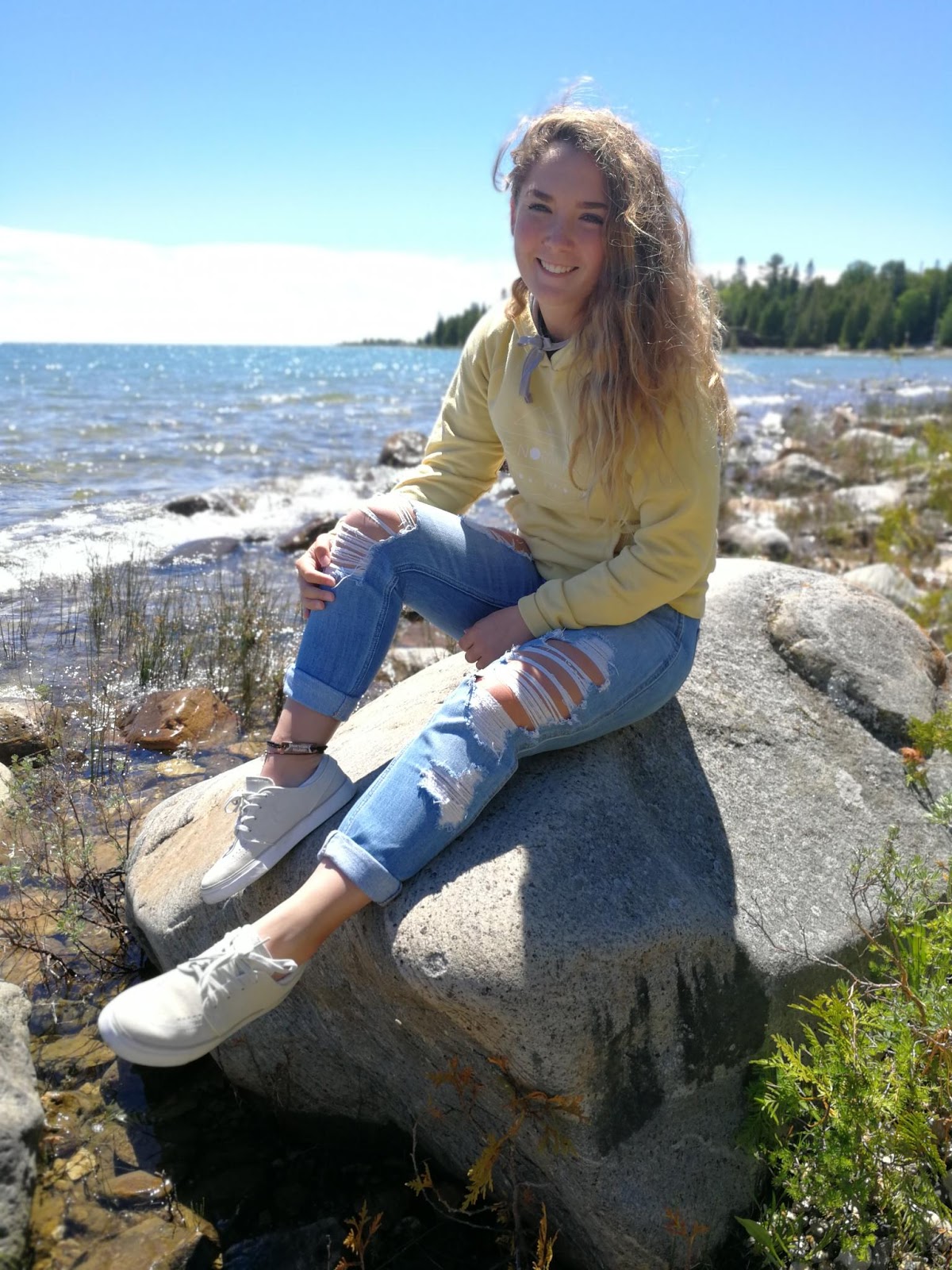 On our way back to Hessel from Drummond Island we stopped to take a few pictures. Here's one of Elli. I told her no sense in getting senior pictures now 😁